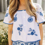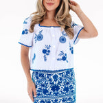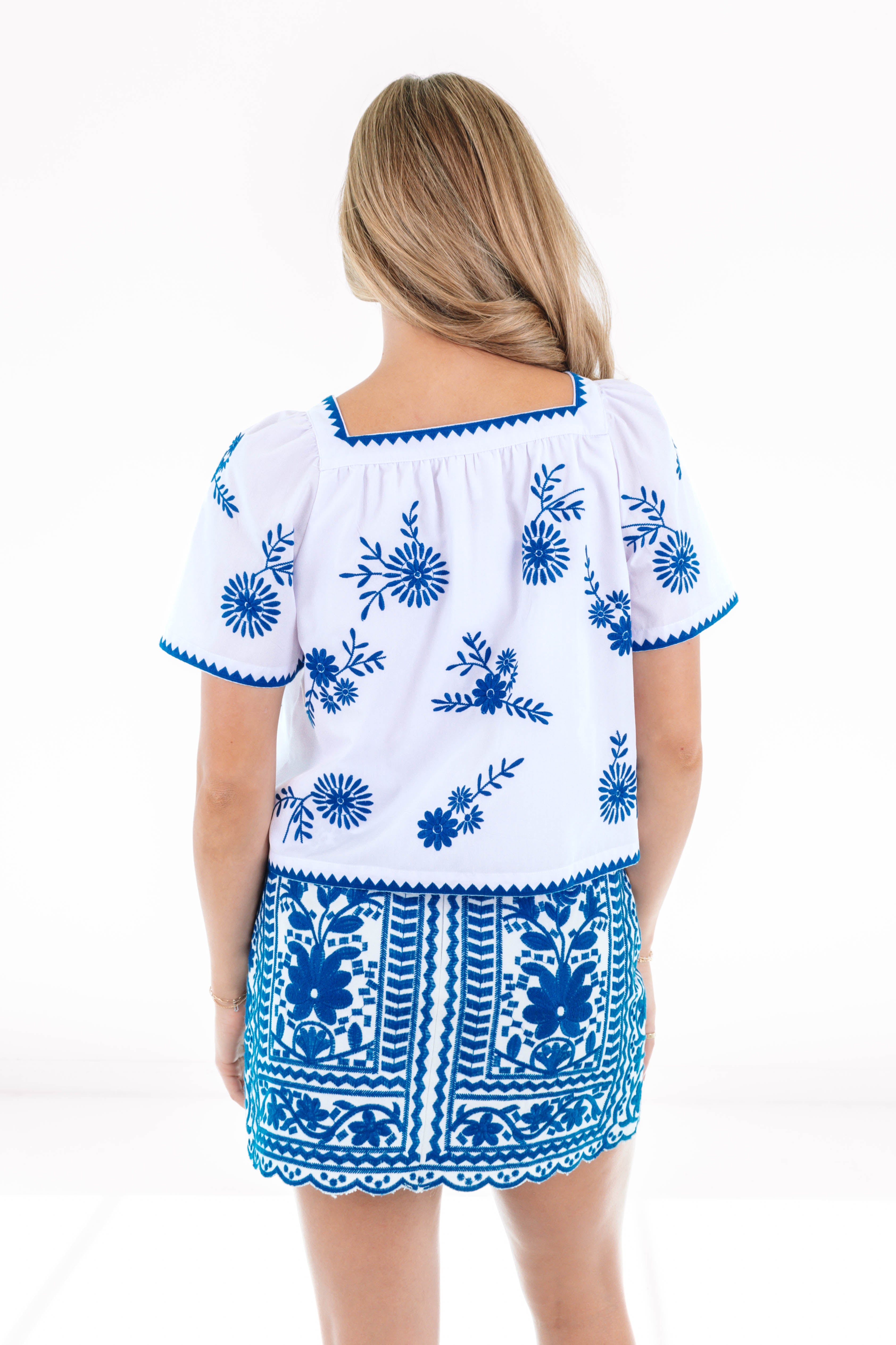 This feminine button-up top features a bold blue trim & a fresh white hue, adding a romantic touch to your spring wardrobe. With its lightweight feel & easy, flattering fit, it’s both polished & effortless—perfect for pairing with our Laken Skirt for brunch dates, weekend strolls, or any sunny day outing!