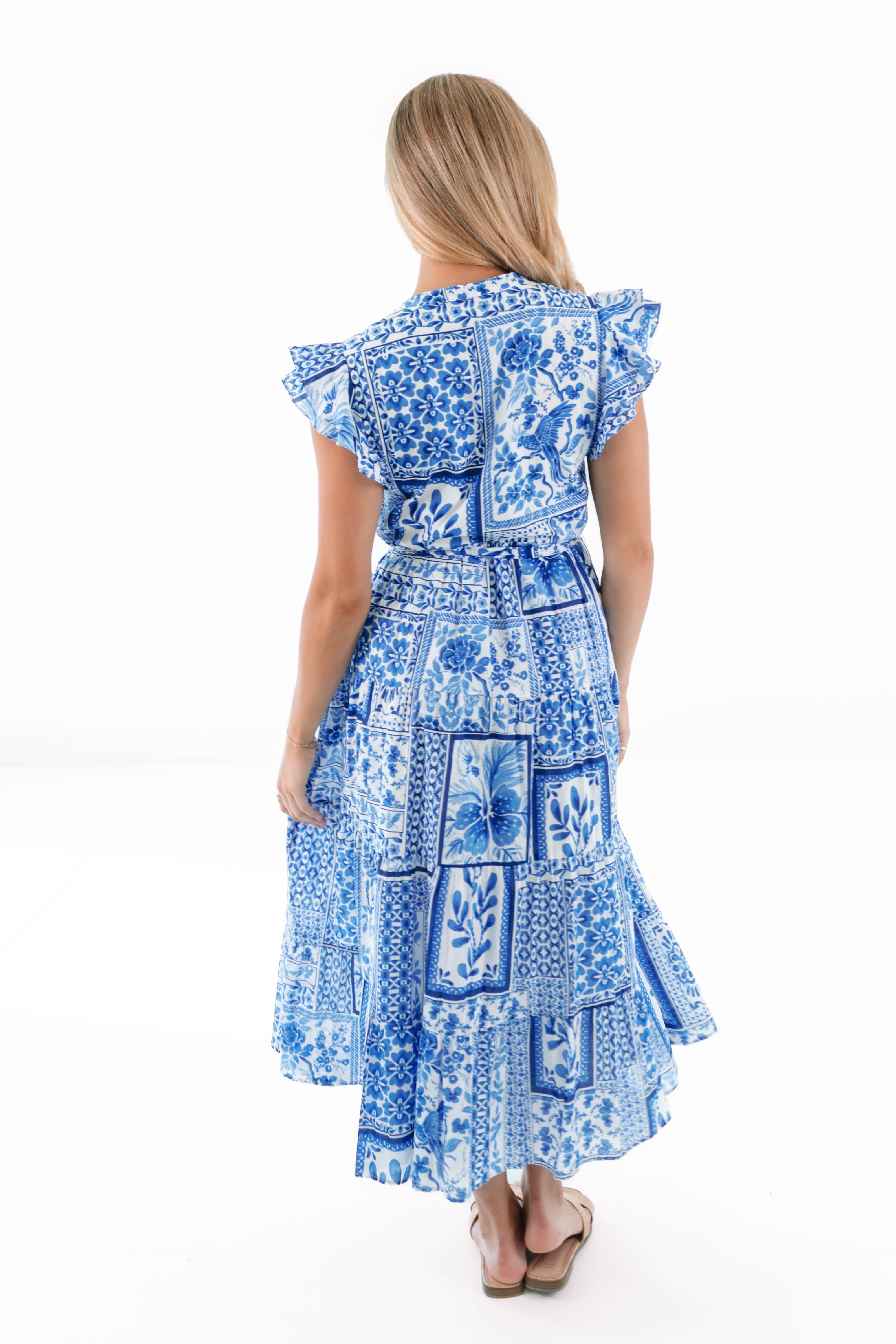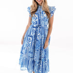 This playful midi dress features button up neckline & ruffle sleeves, adding a touch of charm & movement. With its flowy silhouette & convenient pockets, it's both stylish & practical—perfect for casual outings or a laid-back day of fun!