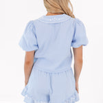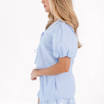 This feminine button-up top features an adjustable tie neckline & a fresh white embroidery, adding a romantic touch to your spring wardrobe. With its lightweight feel & easy, flattering fit, it’s both polished & effortless—perfect for pairing with our Daphne Ruffle Shorts for brunch dates, weekend strolls, or any sunny day outing!