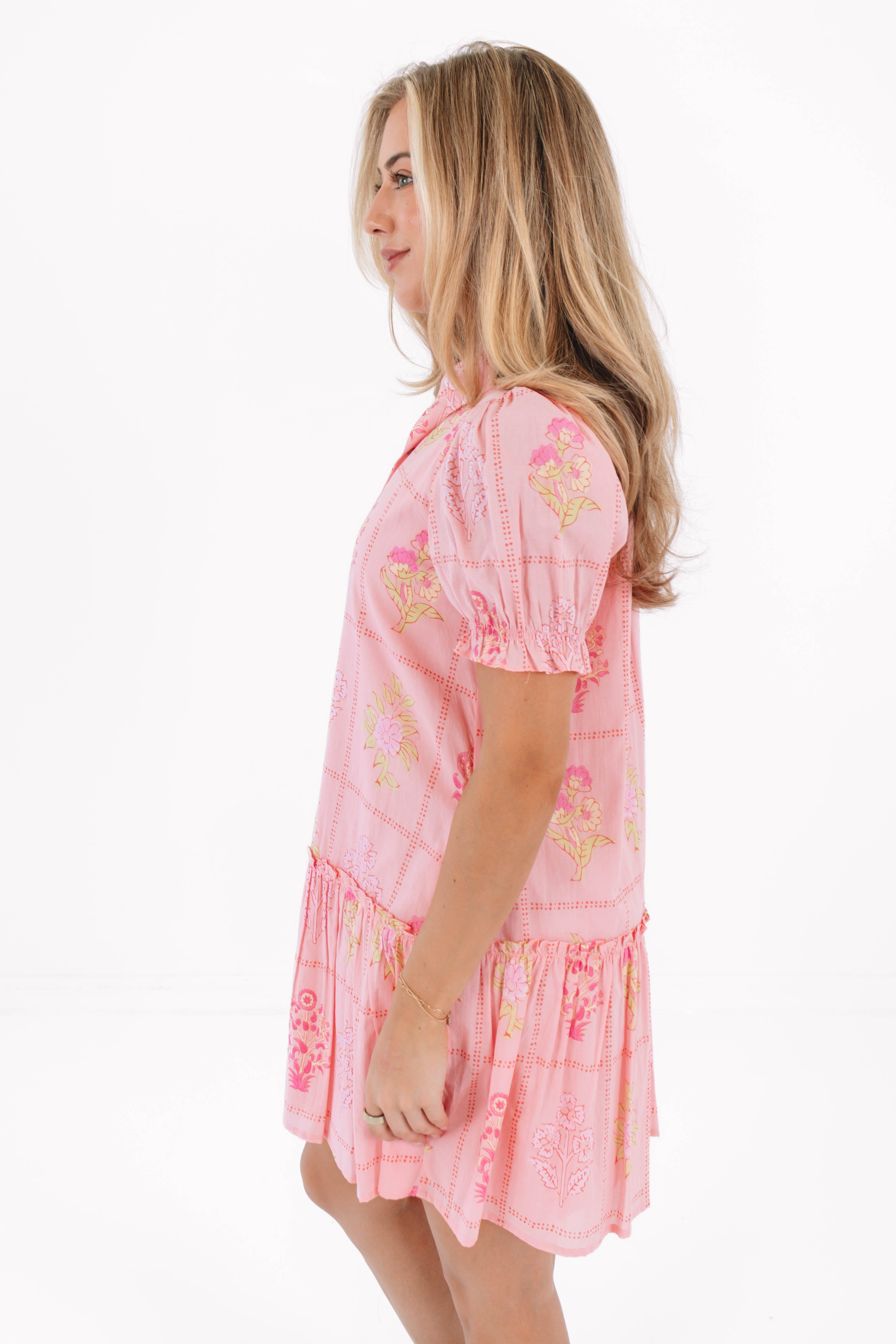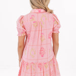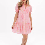 This playful short dress features button up neckline and puff sleeves, adding a touch of charm and movement. With its flowy silhouette and convenient pockets, it's both stylish and practical—perfect for casual outings or a laid-back day of fun!