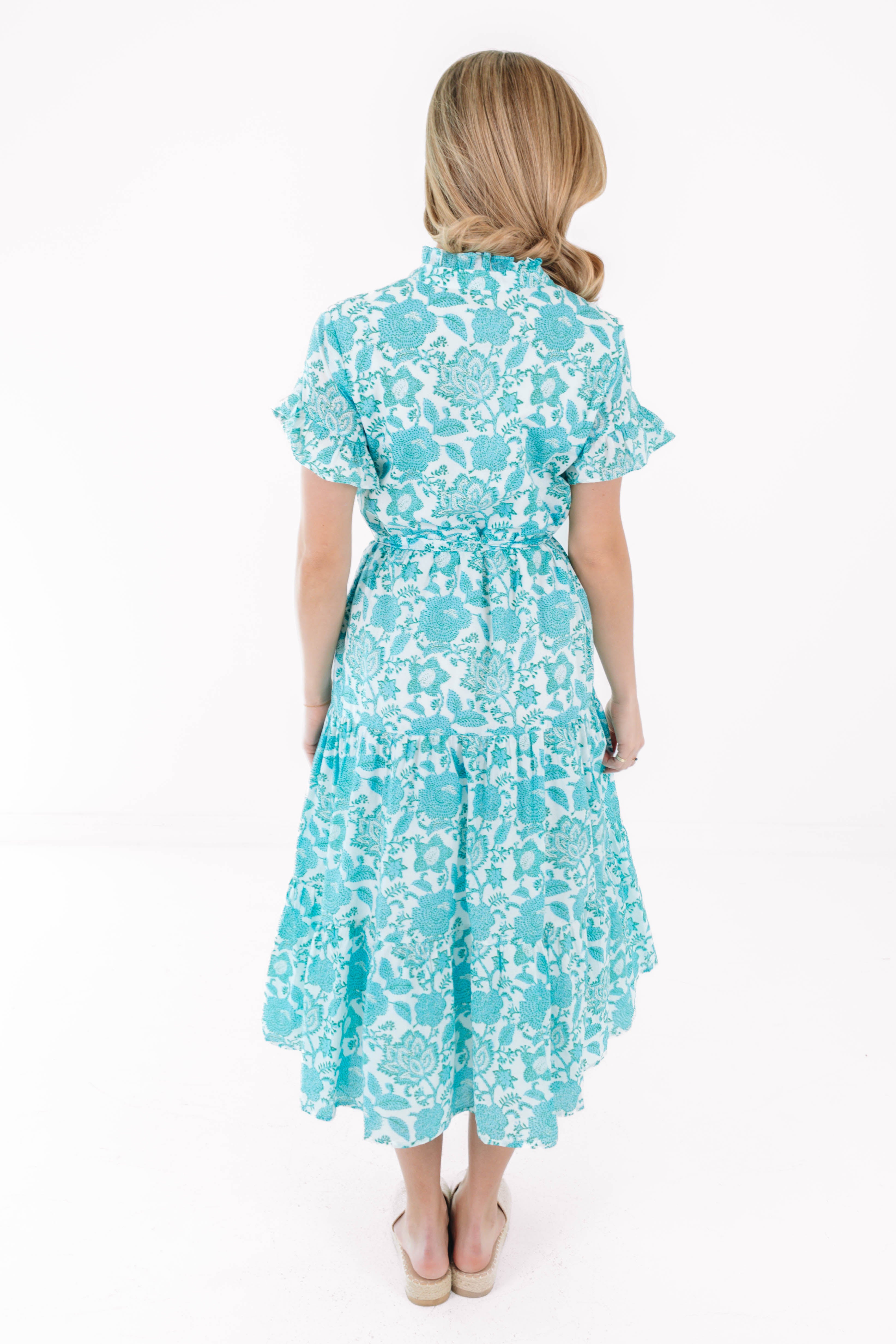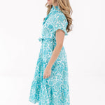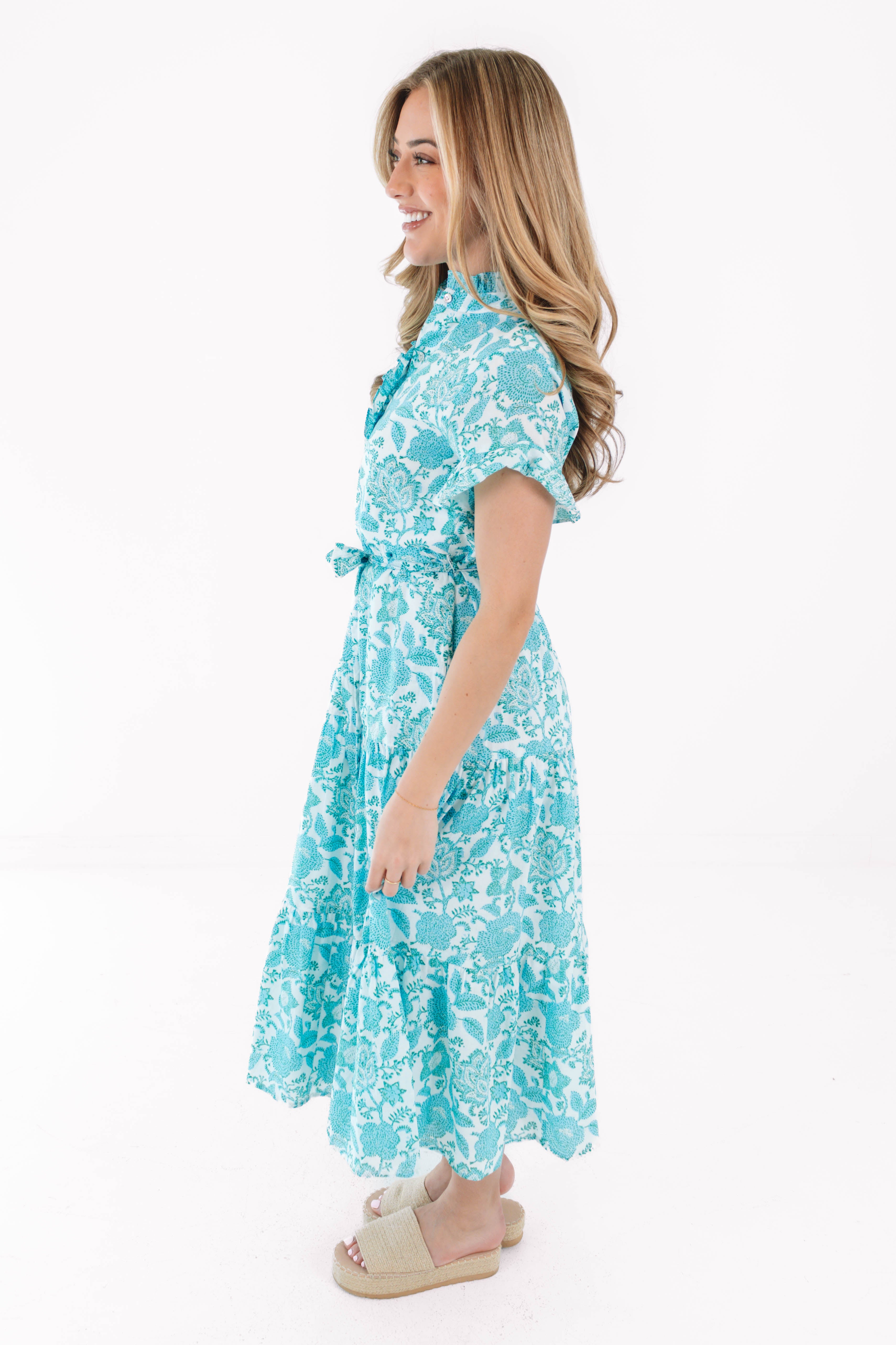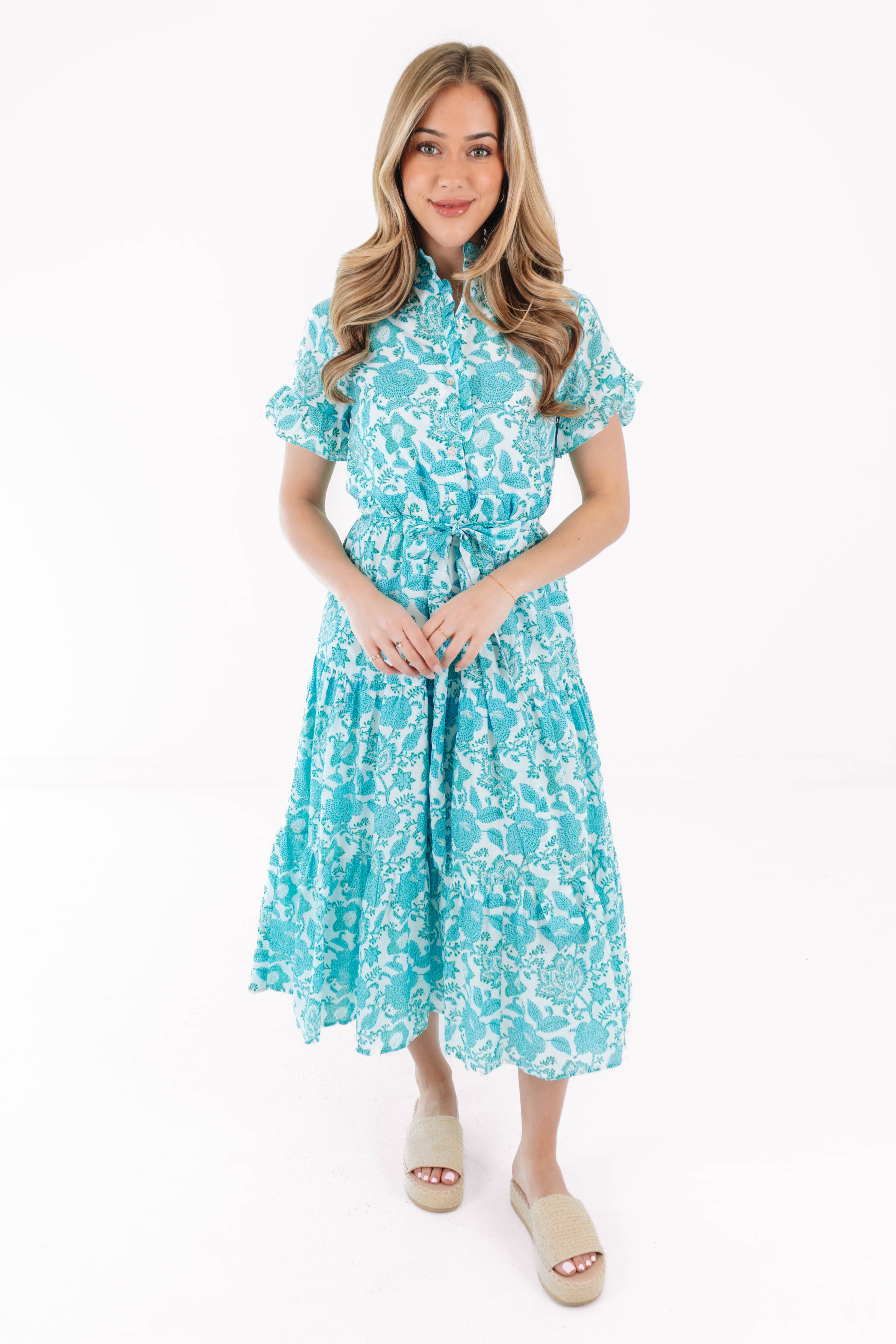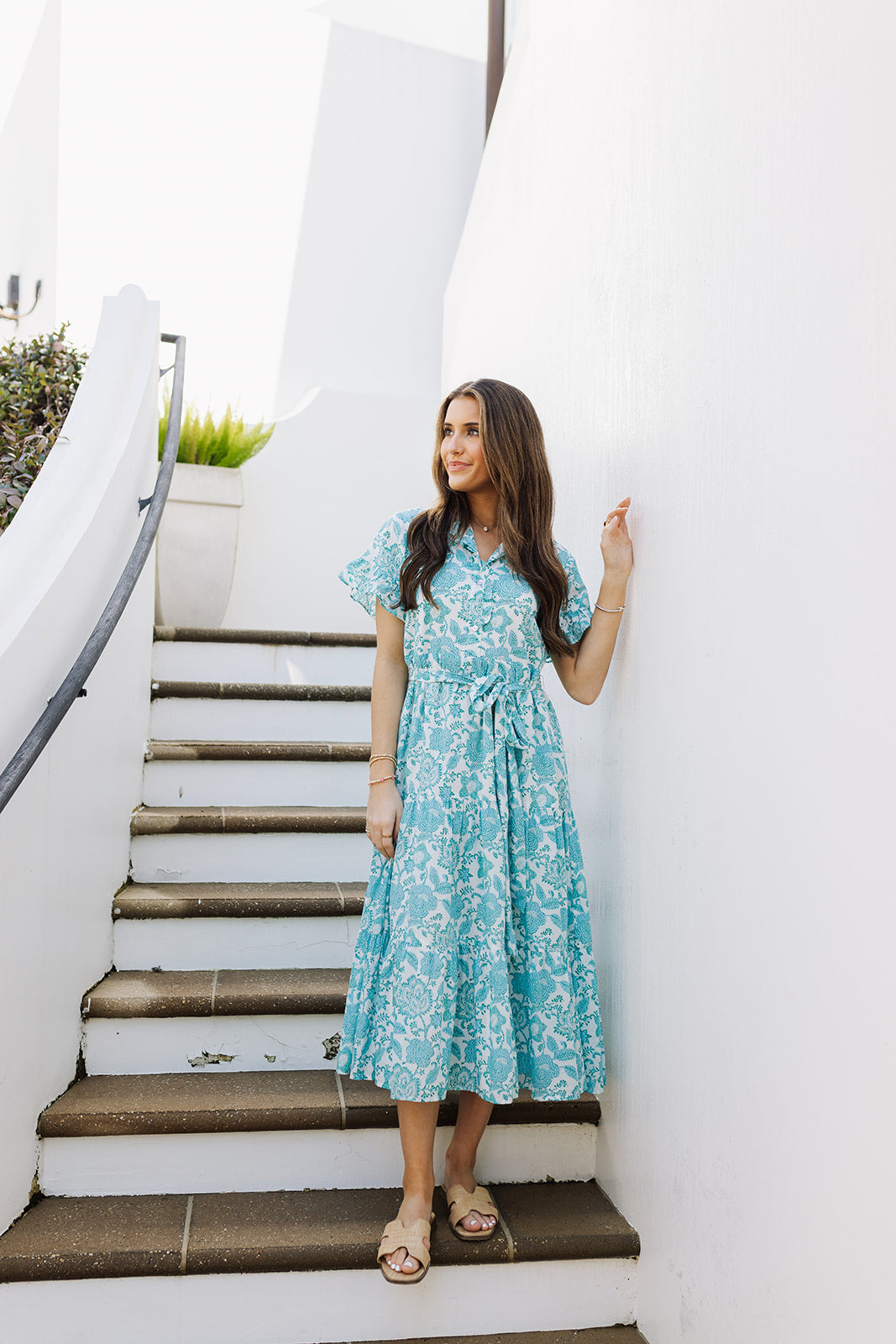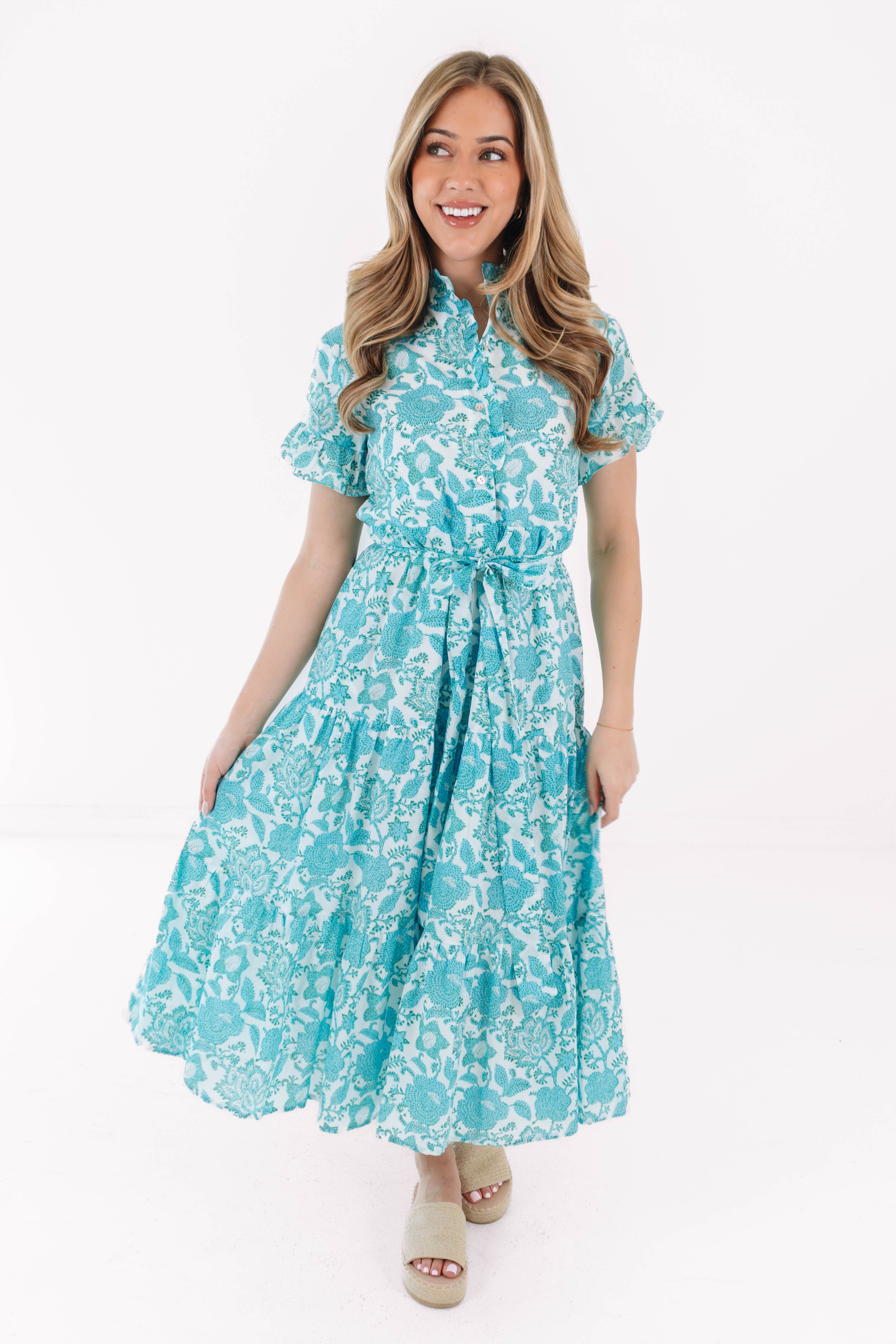 This playful midi dress features button up neckline & ruffle sleeves, adding a touch of charm & movement. With its flowy silhouette & convenient pockets, it's both stylish & practical—perfect for casual outings or a laid-back day of fun!
