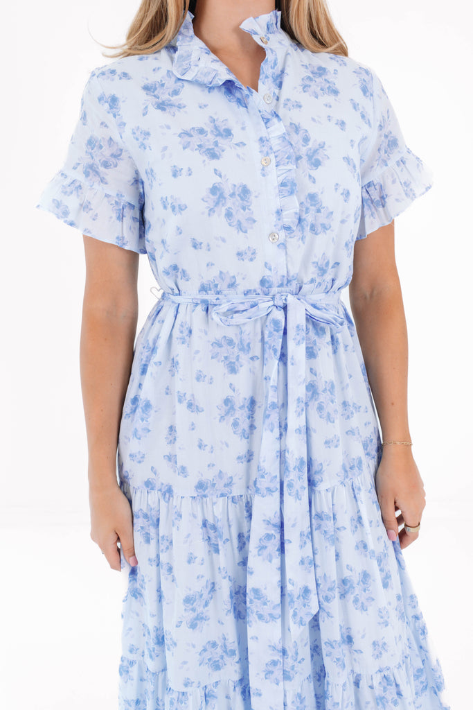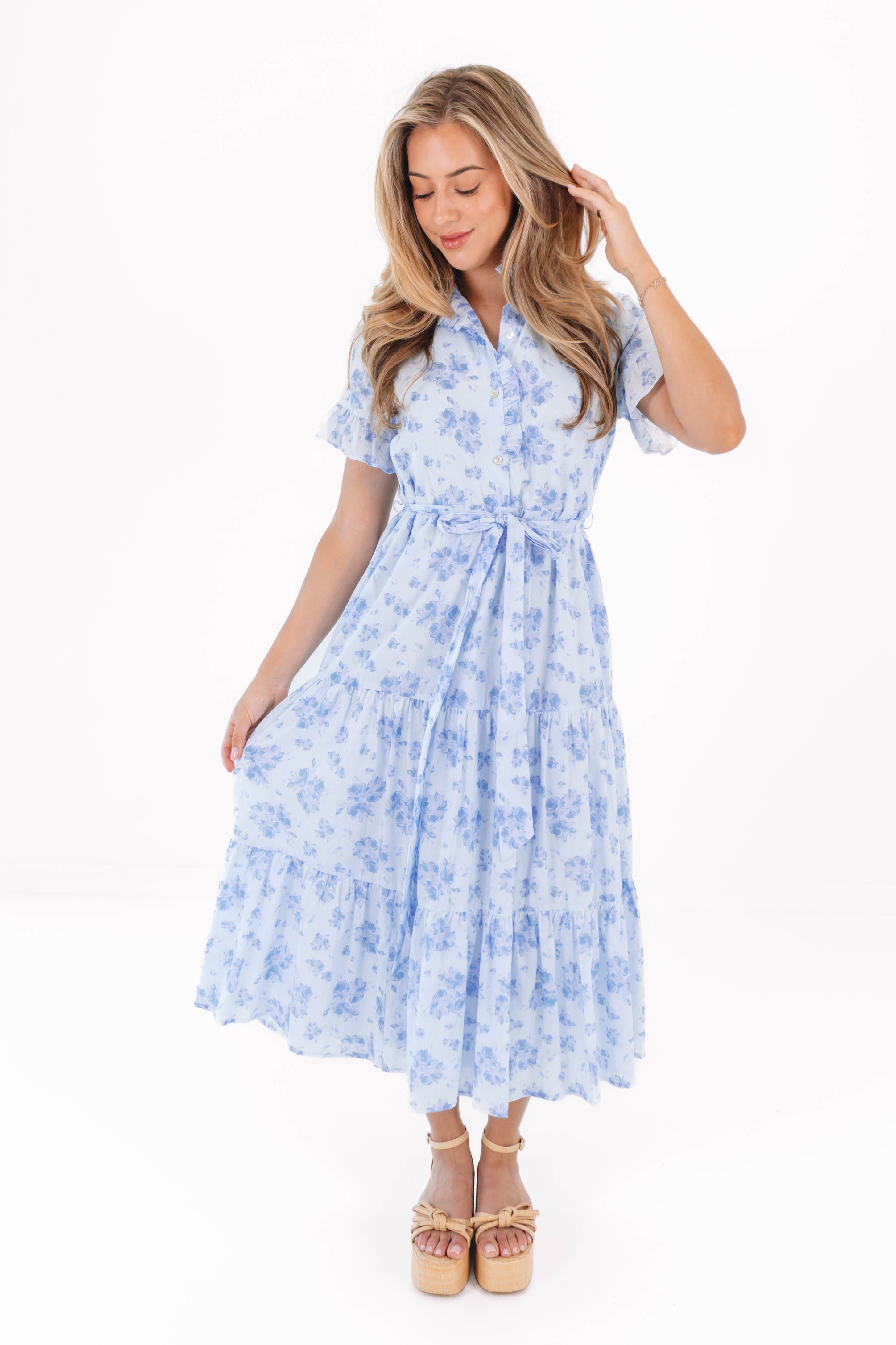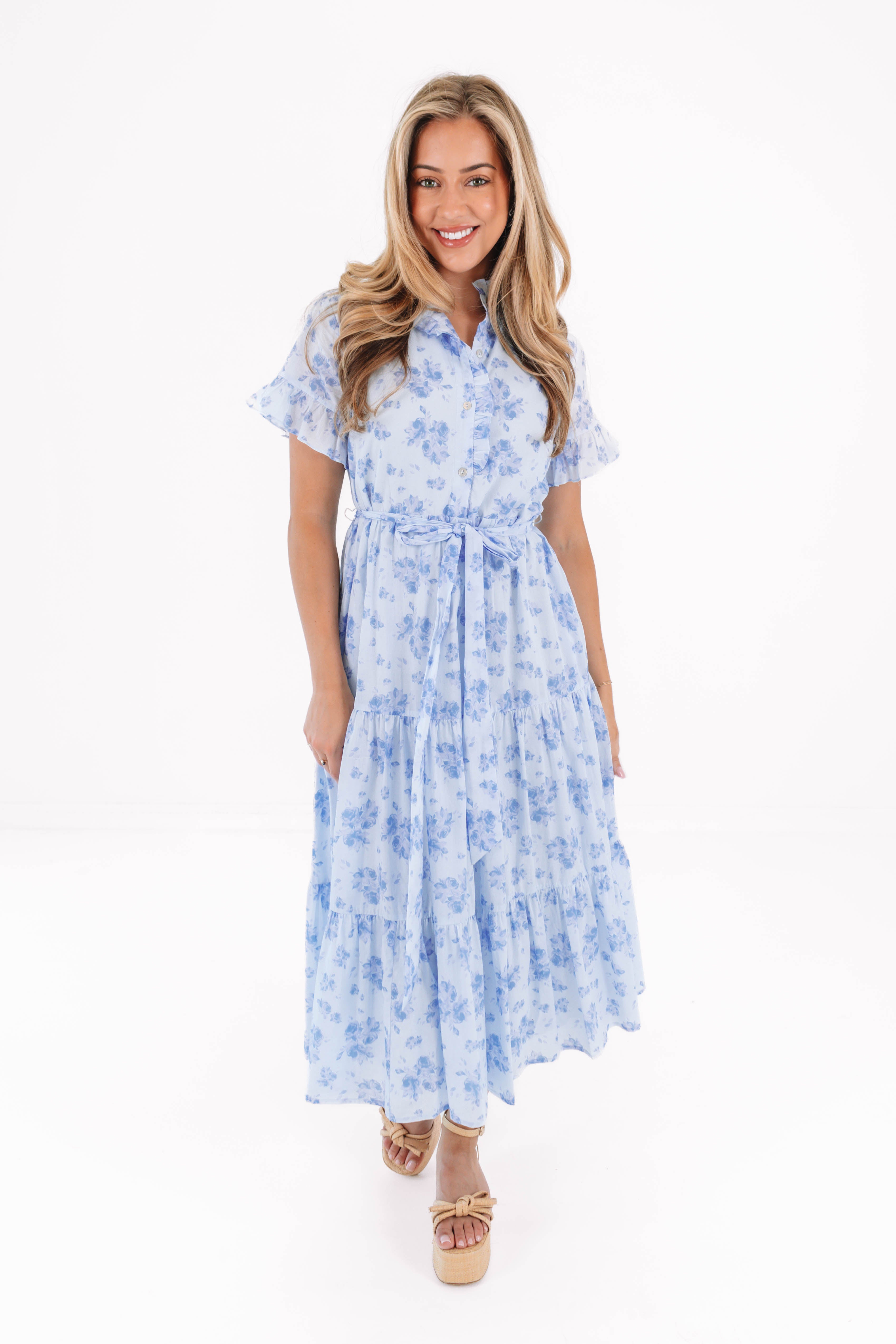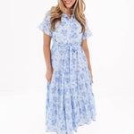 This playful midi dress features button up neckline and ruffle sleeves, adding a touch of charm and movement. With its flowy silhouette and convenient pockets, it's both stylish and practical—perfect for casual outings or a laid-back day of fun!
