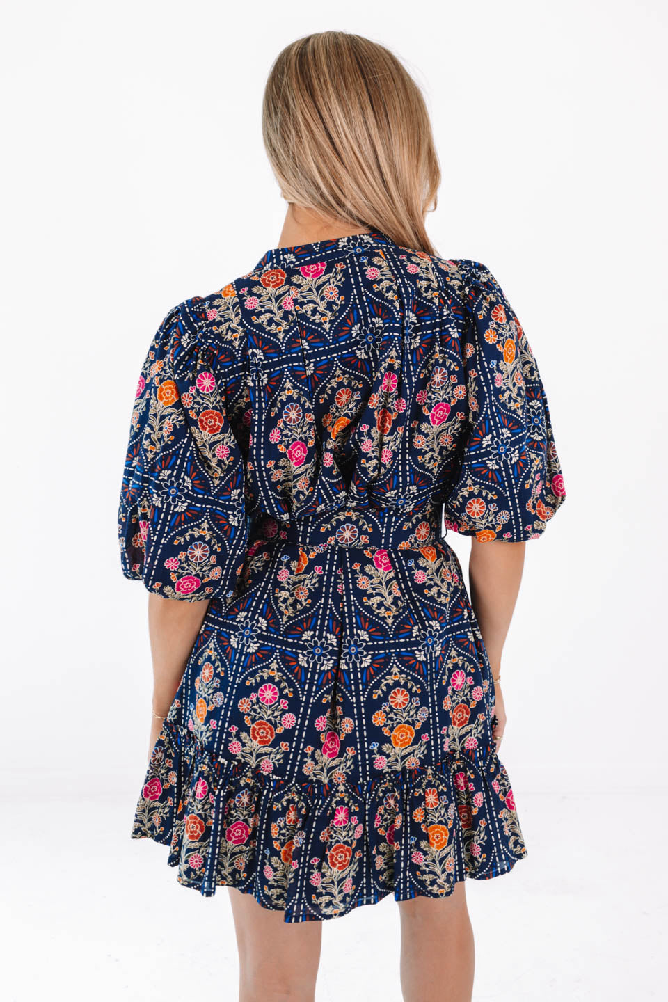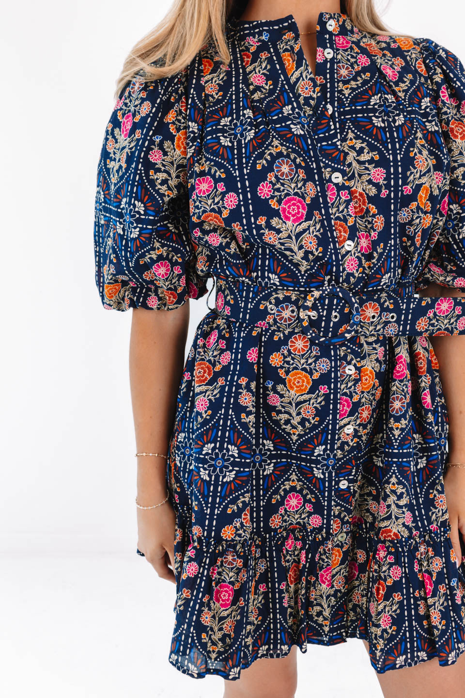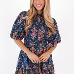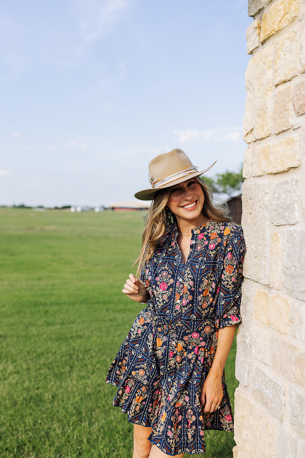 Classic with a western touch! This dress features puff sleeves, a structured belt, and a button-up front that blends polish with ease. Designed in a timeless navy print, it channels effortless fall vibes with a hint of ranch lifestyle charm. Ideal for weekend outings, casual dinners, and crisp autumn days.