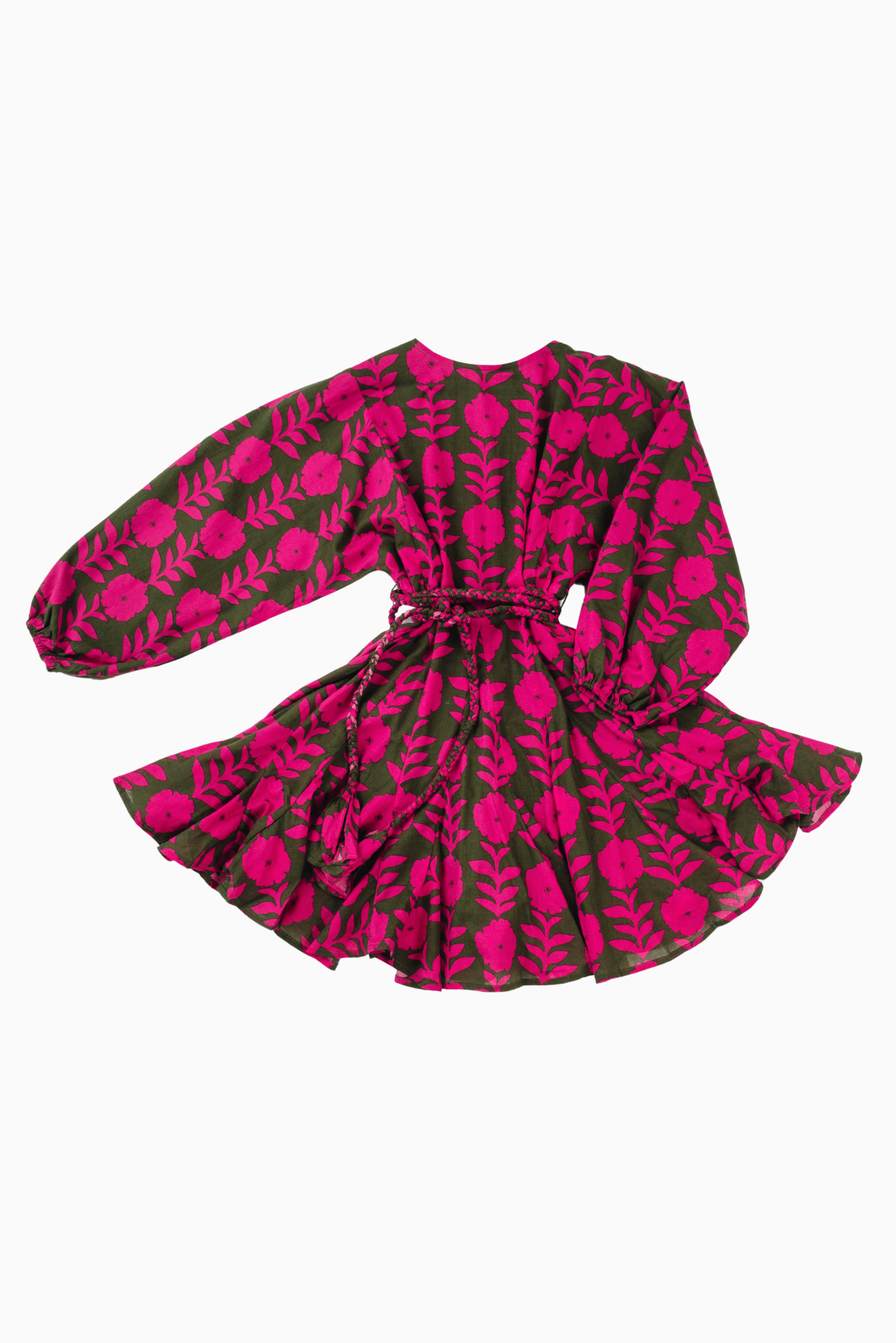 Get fall ready in this olive tween dress with a sweet pink print & rope tie belt. Long sleeves & a flared skirt make it both comfy and charming. Pair it with boots for the perfect autumn look!