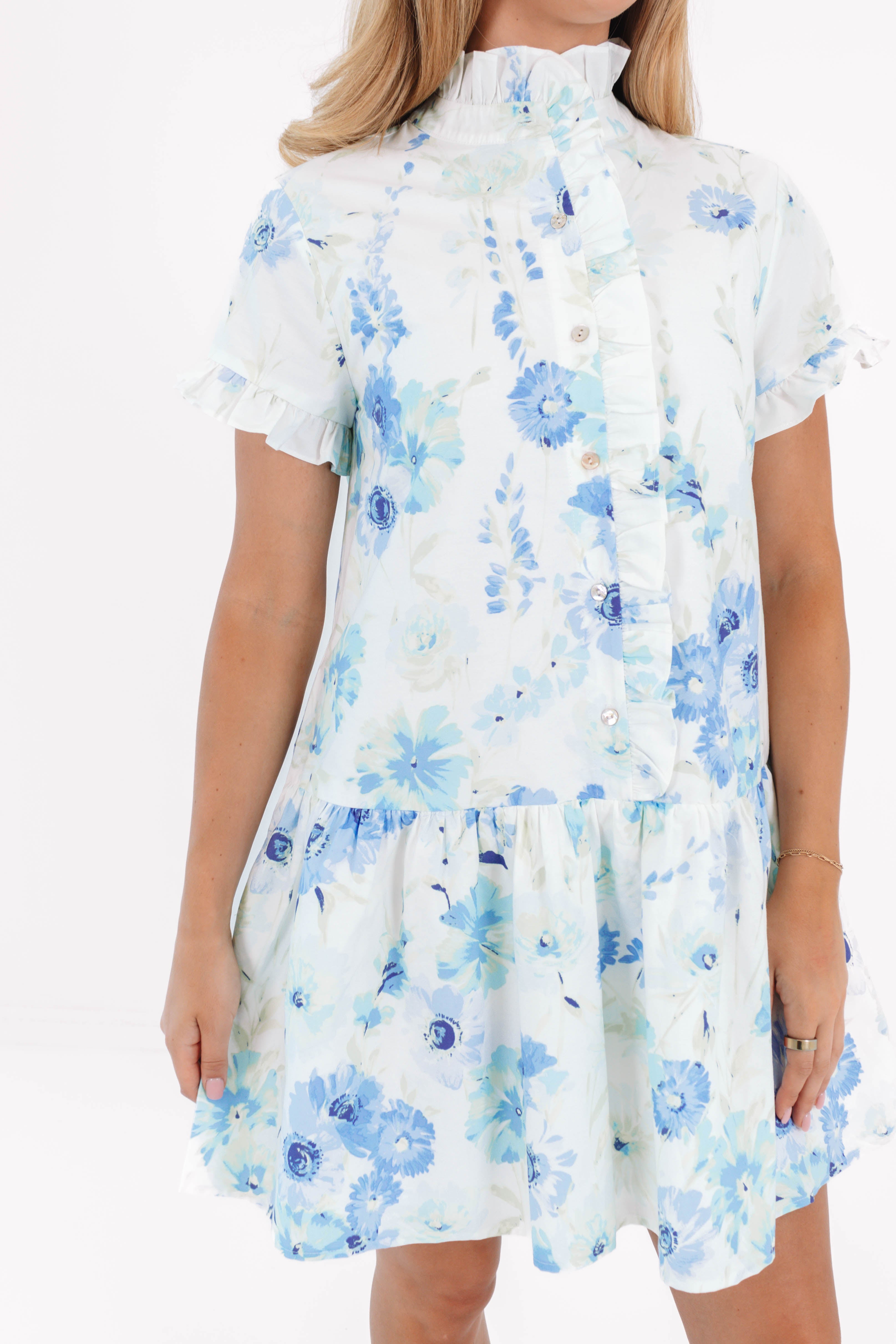 This playful short dress features button up neckline & ruffle sleeves, adding a touch of charm & movement. With its flowy silhouette & convenient pockets, it's both stylish & practical—perfect for casual outings or a laid-back day of fun!