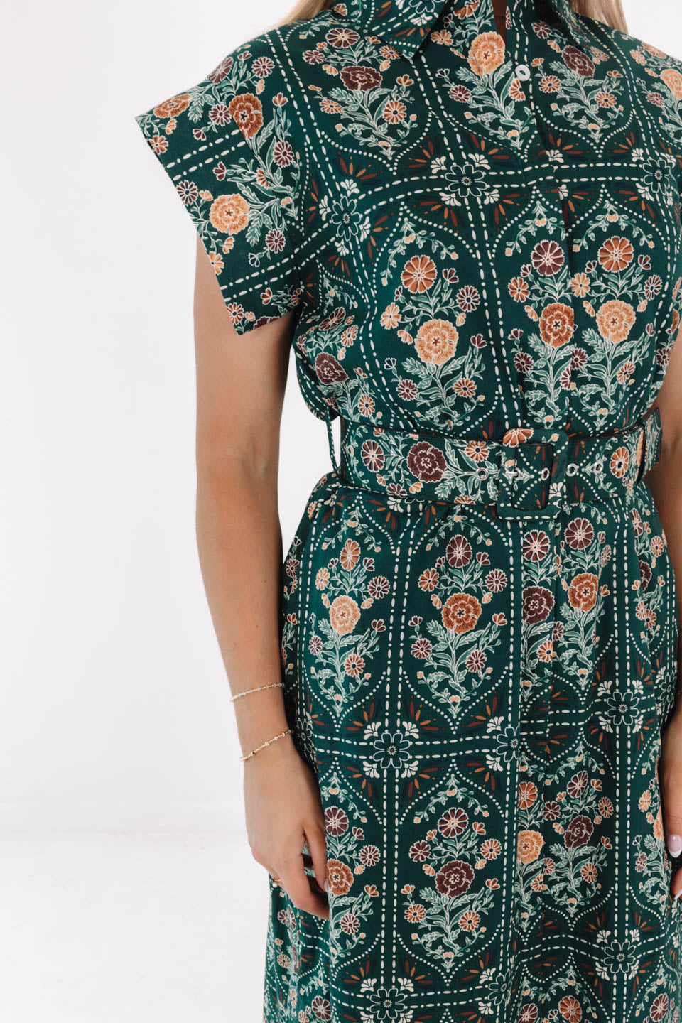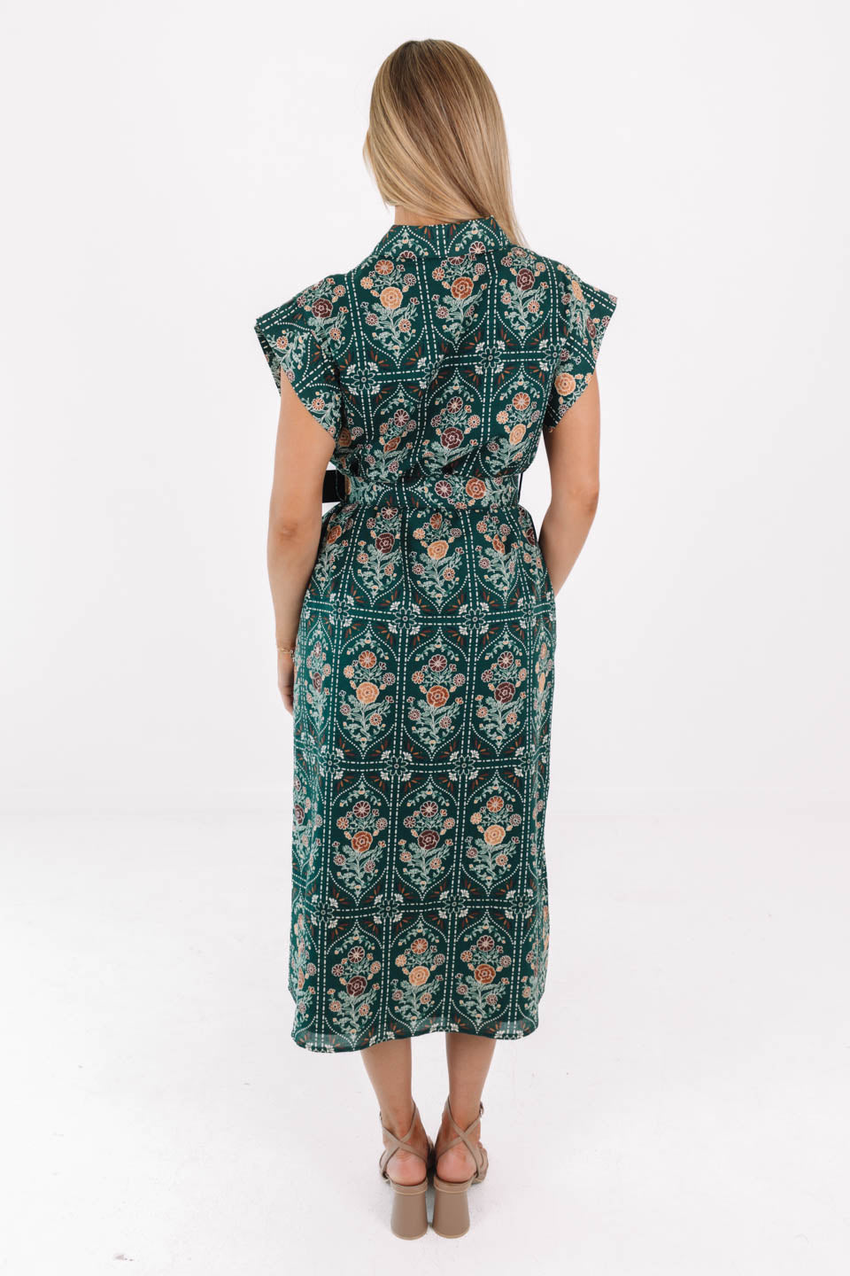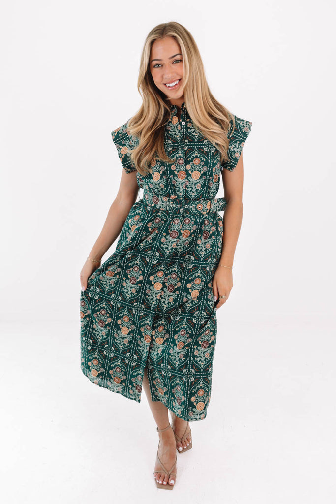 The Hazel Belted Button Up Midi Dress