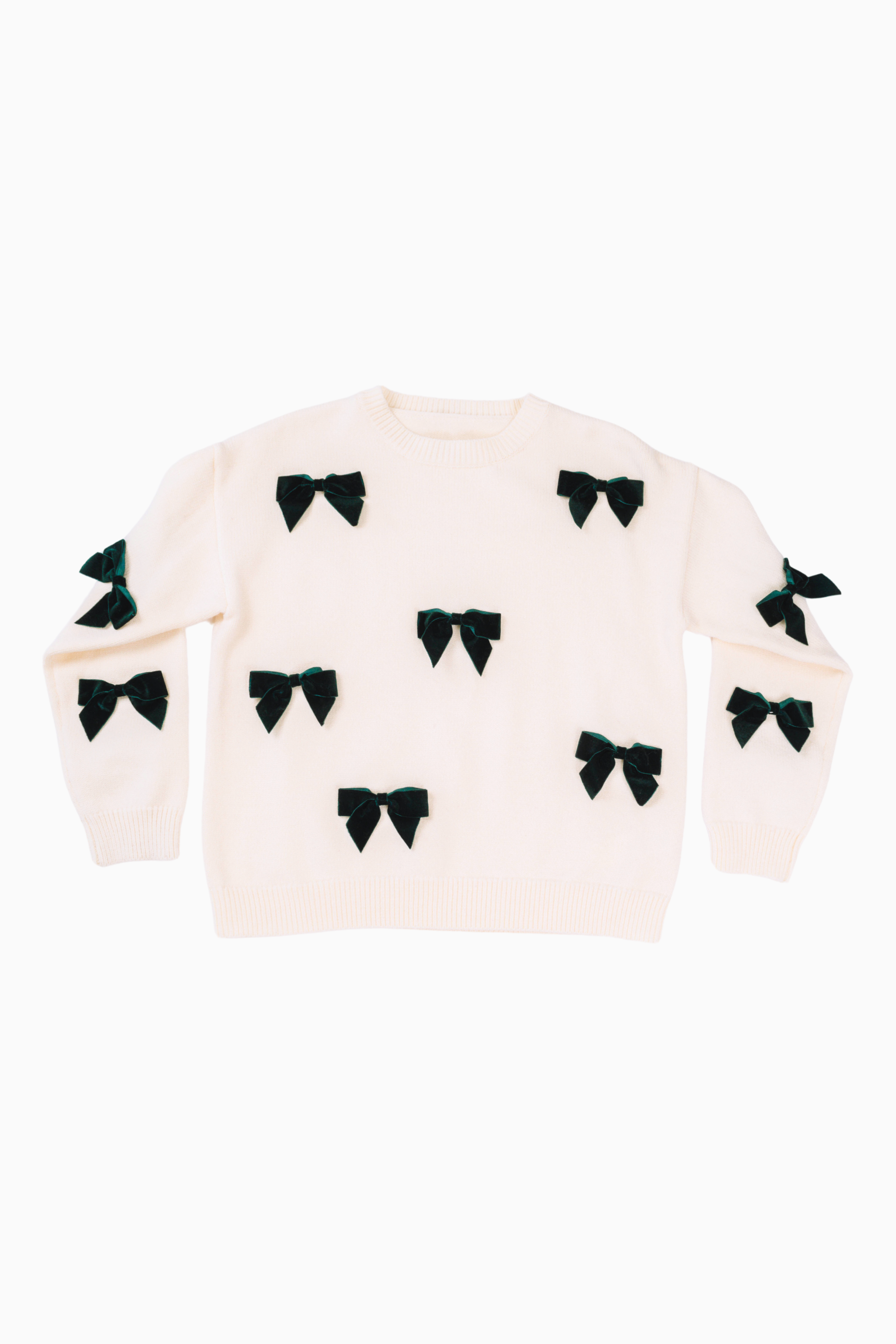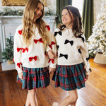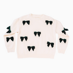 Bring festive charm to her holiday wardrobe with this white tween sweater, featuring a sweet black bow detail. The cozy knit & playful accents add a cheerful, seasonal touch - perfect for holiday gatherings & merry celebrations. Pair with our Zanna Tween Skirt for the perfect holiday look!