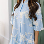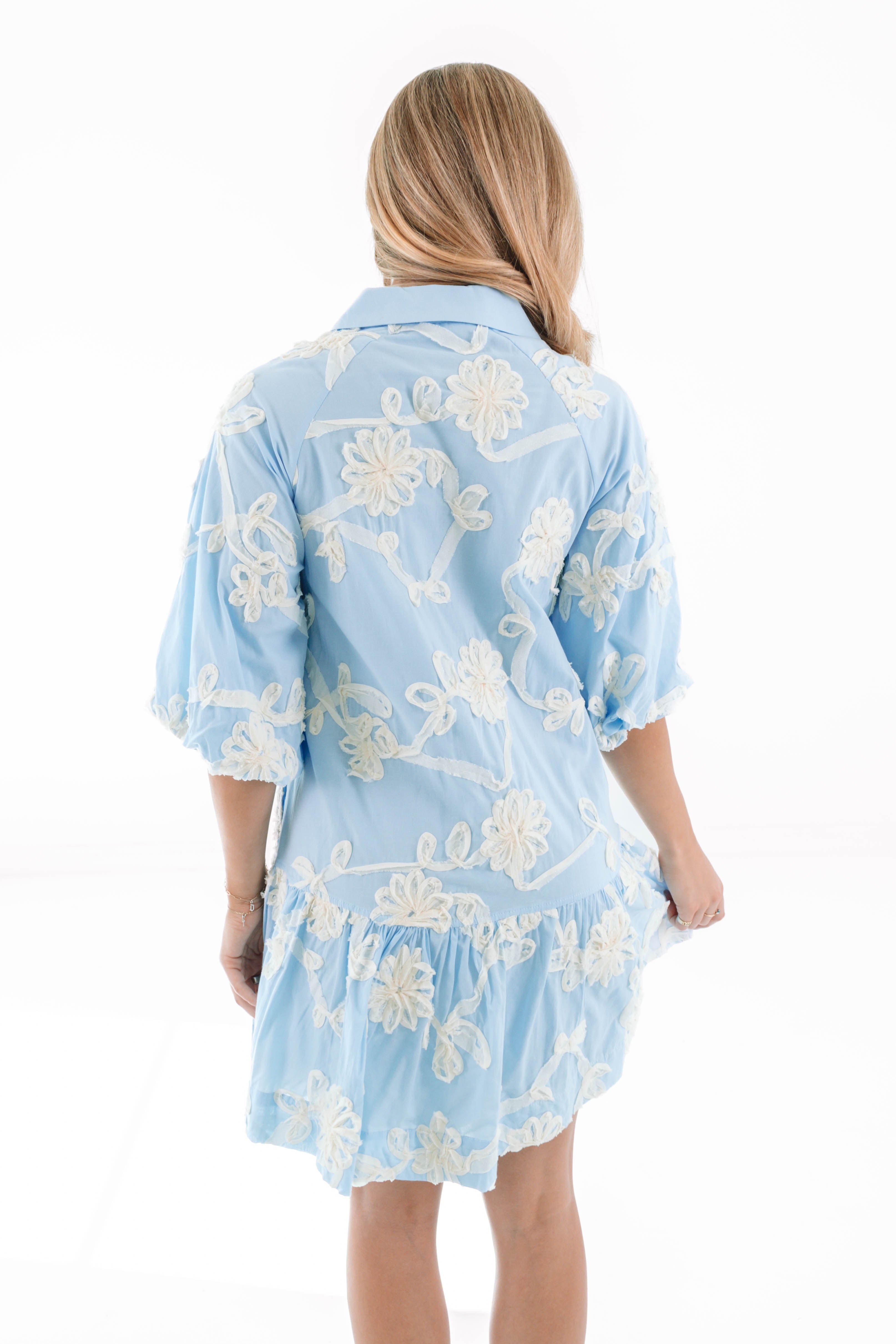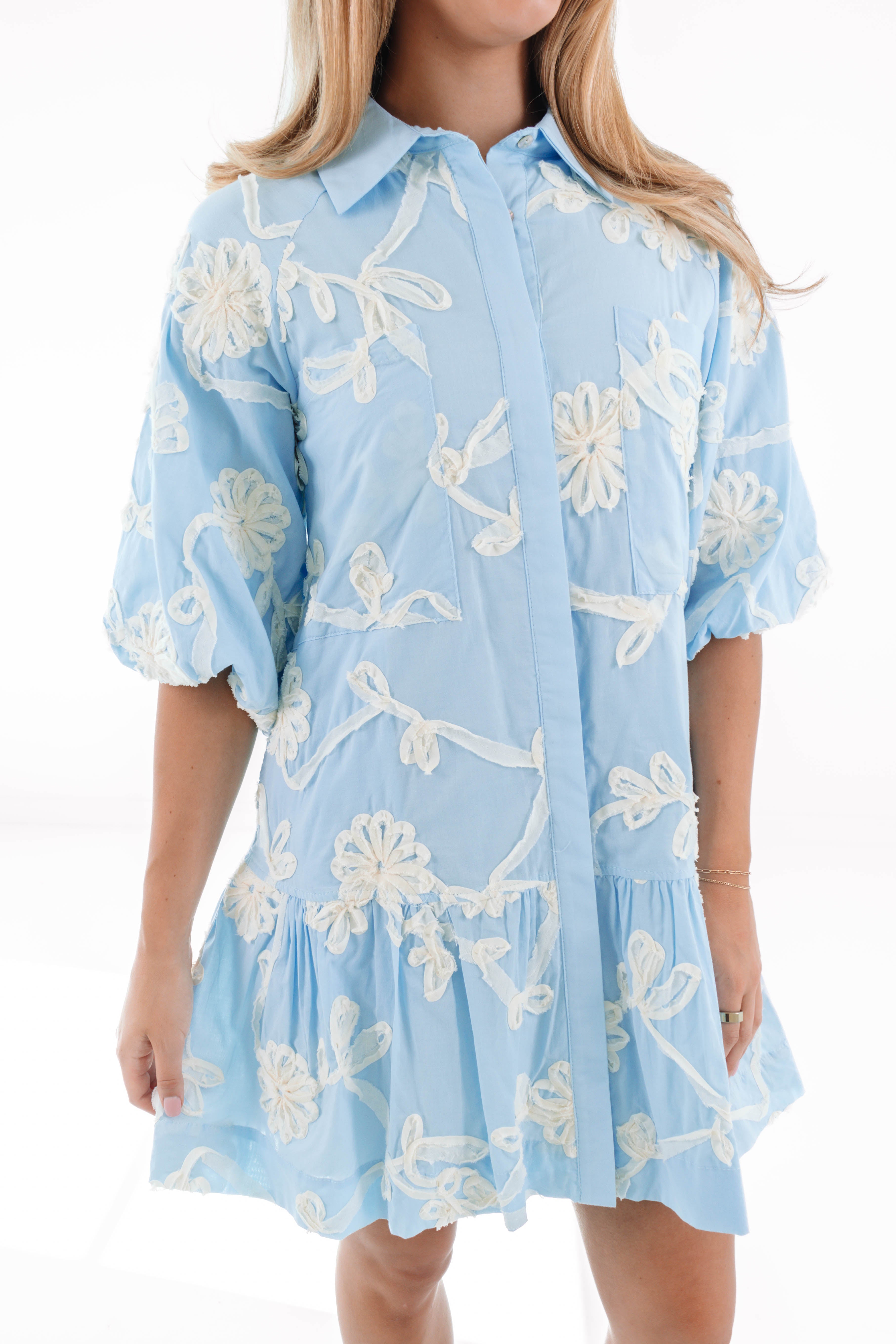 This playful short dress features button up neckline and puff sleeves, adding a touch of charm & movement. With its flowy silhouette & convenient pockets, it's both stylish and practical—perfect for casual outings or a laid-back day of fun!