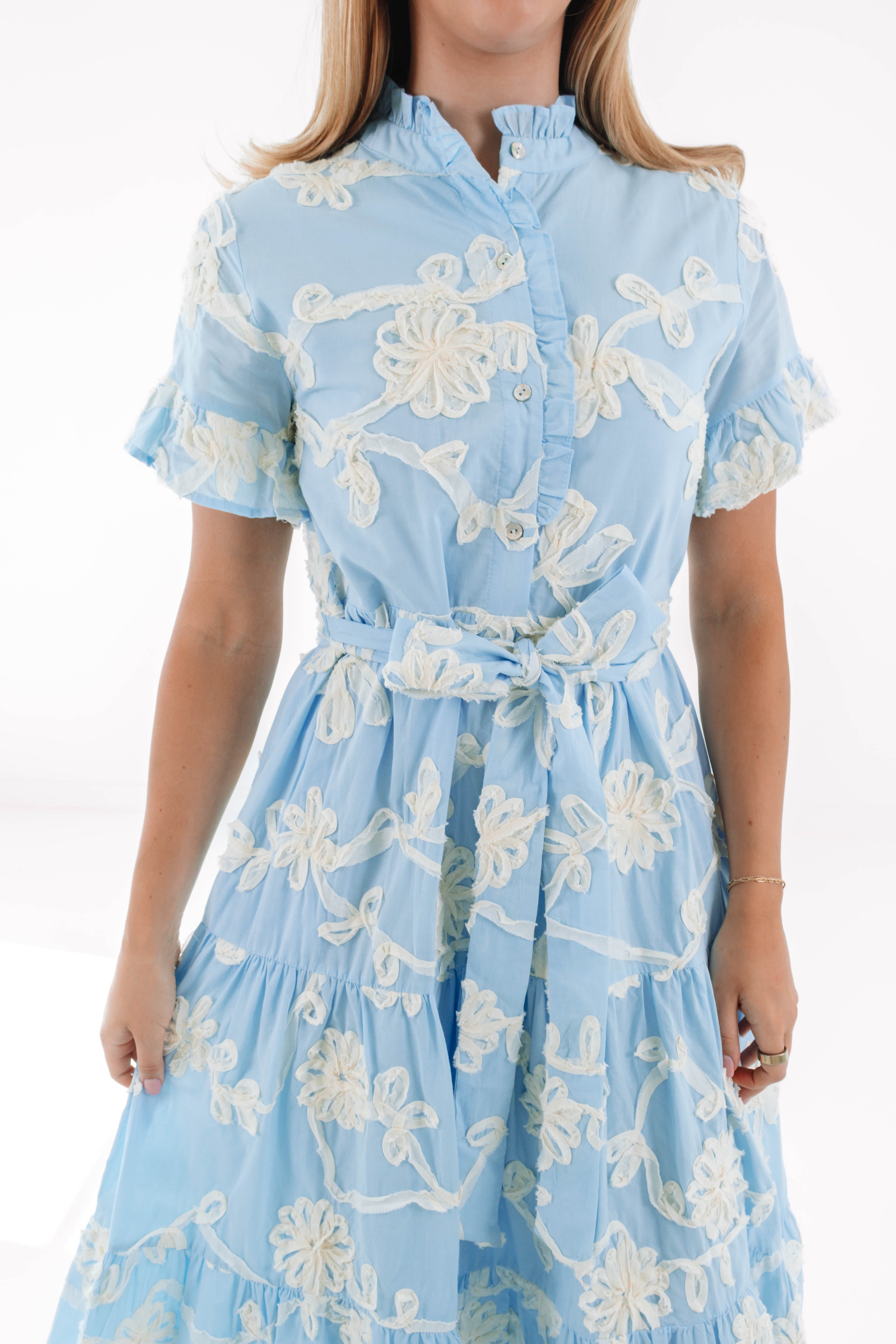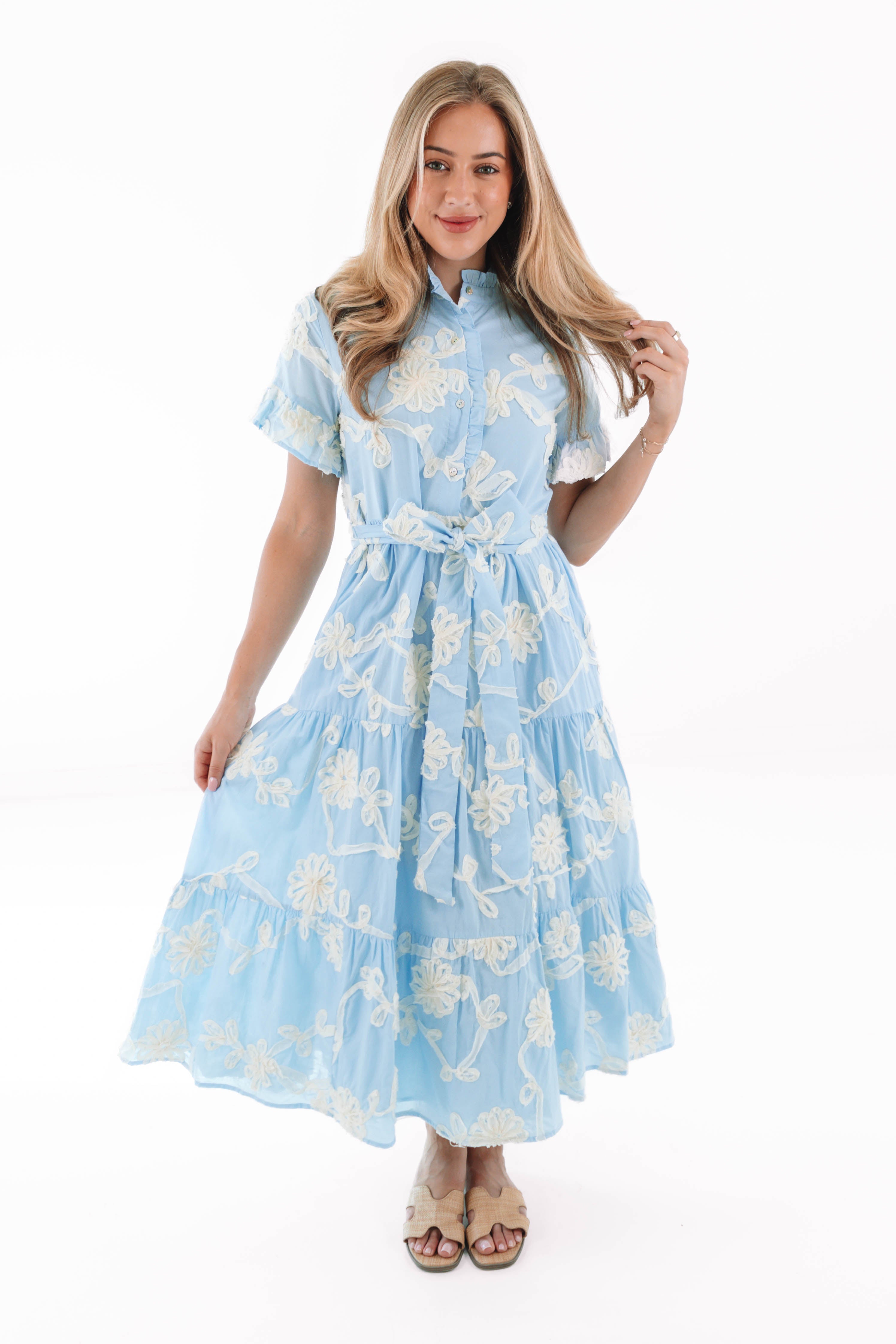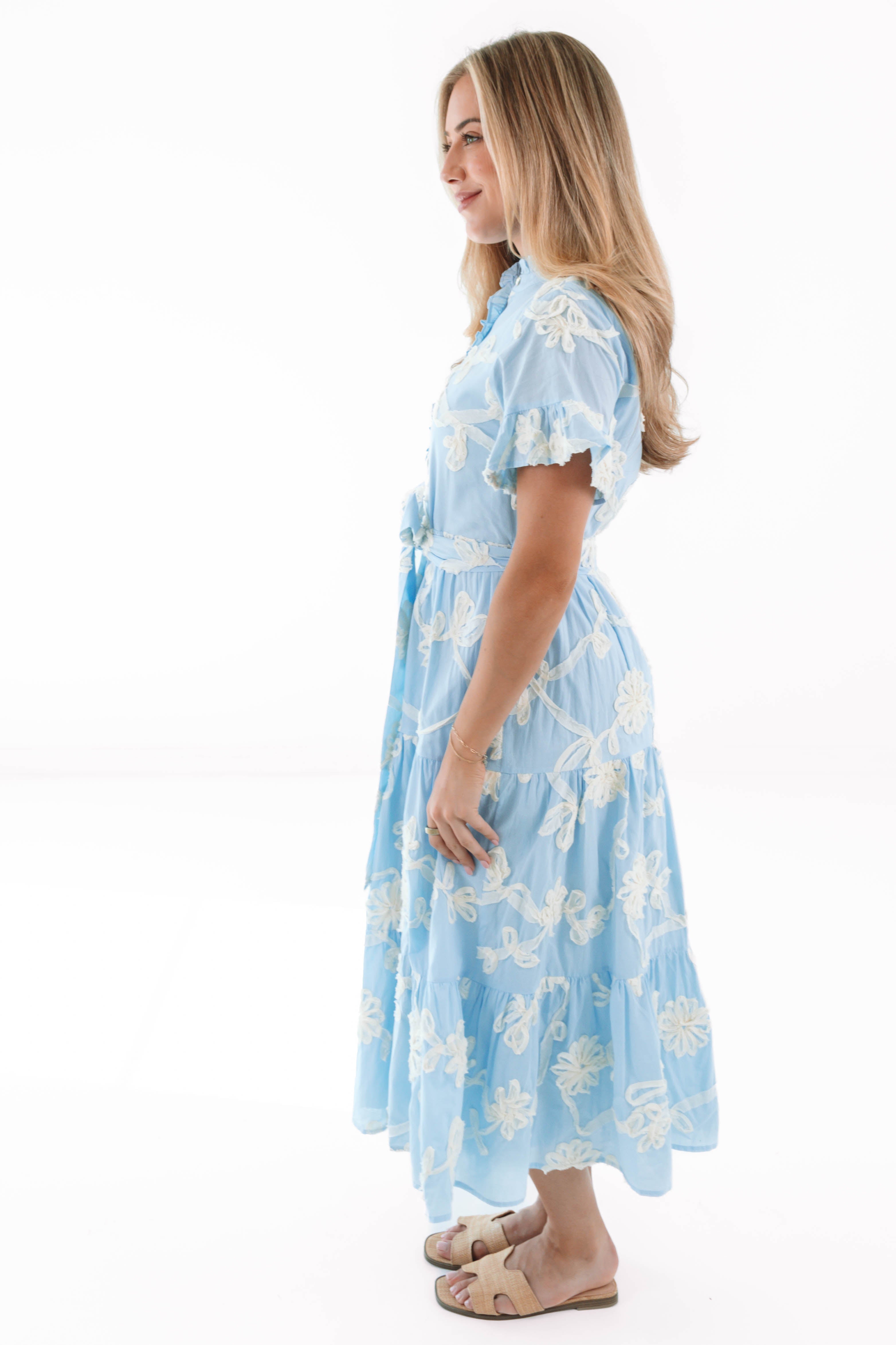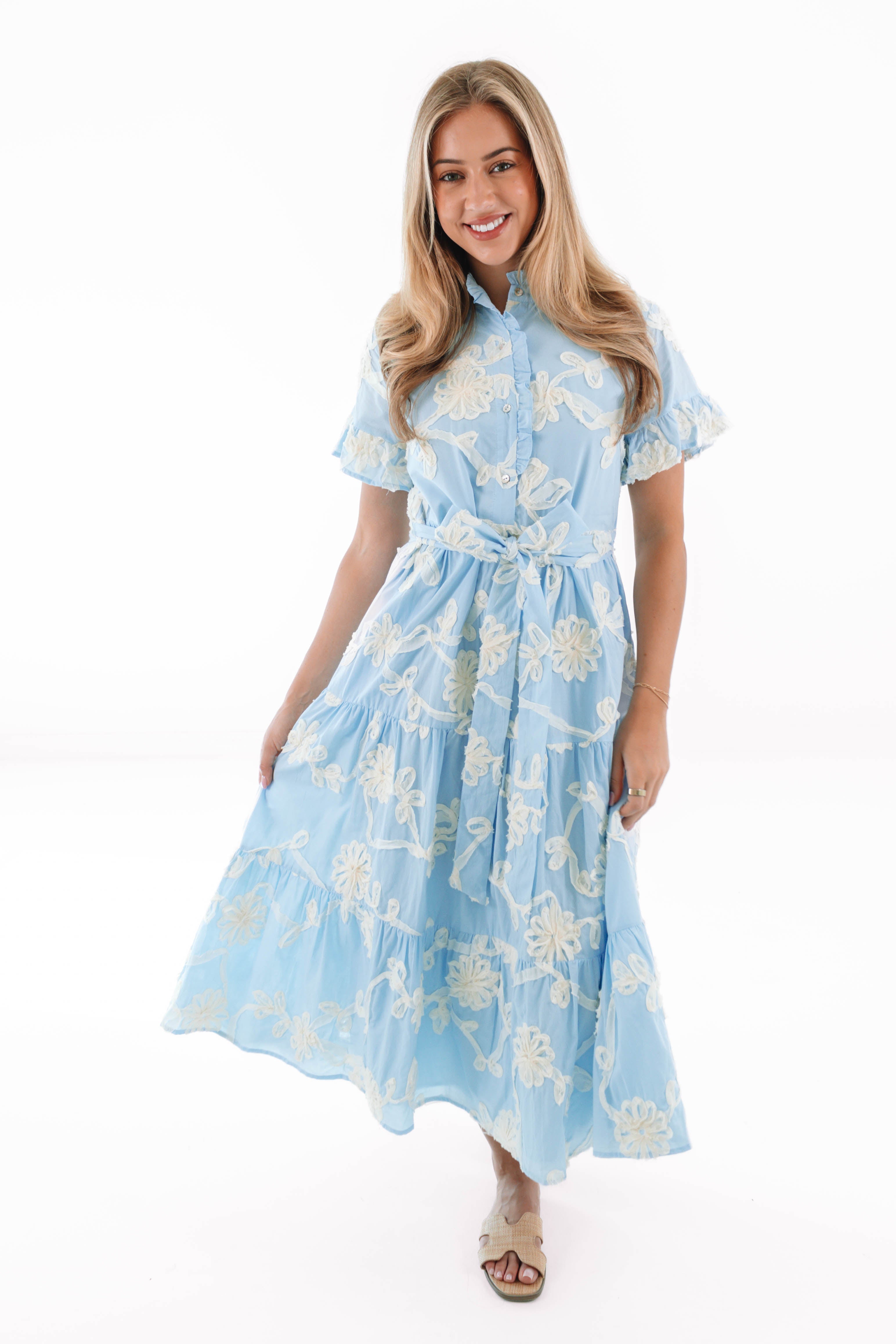 This playful midi dress features button up neckline & ruffle sleeves, adding a touch of charm & movement. With its flowy silhouette & convenient pockets, it's both stylish & practical—perfect for casual outings or a laid-back day of fun!